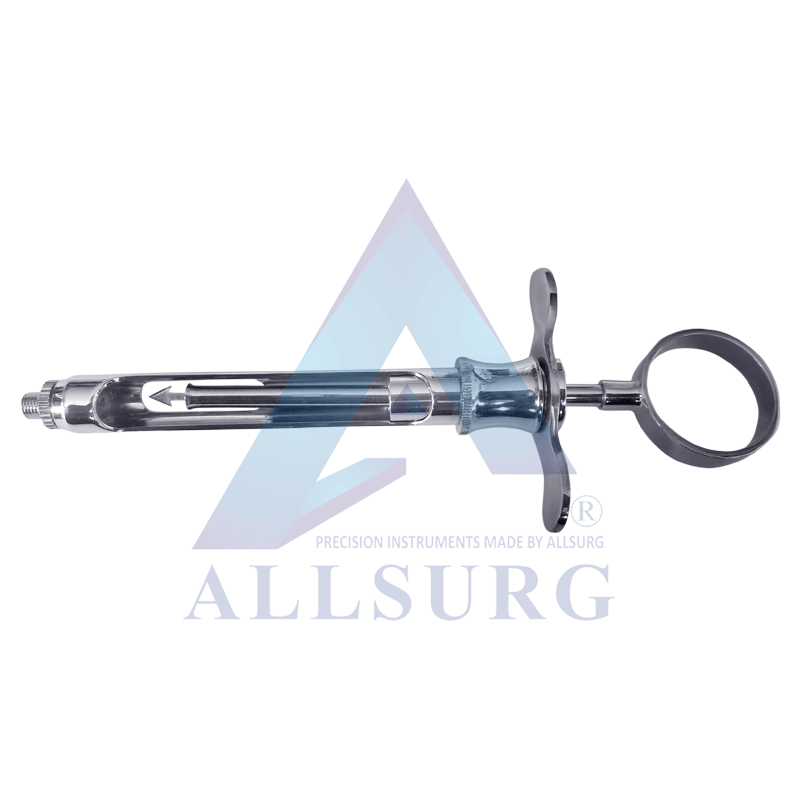 | Aspirating dental syringe has a device like a harpoon at the end of the piston. This hook will penetrate the thick rubber stopper at the end of the cartridge.Aspirating dental syringe is used by dentists for the injection of an anesthetic. |