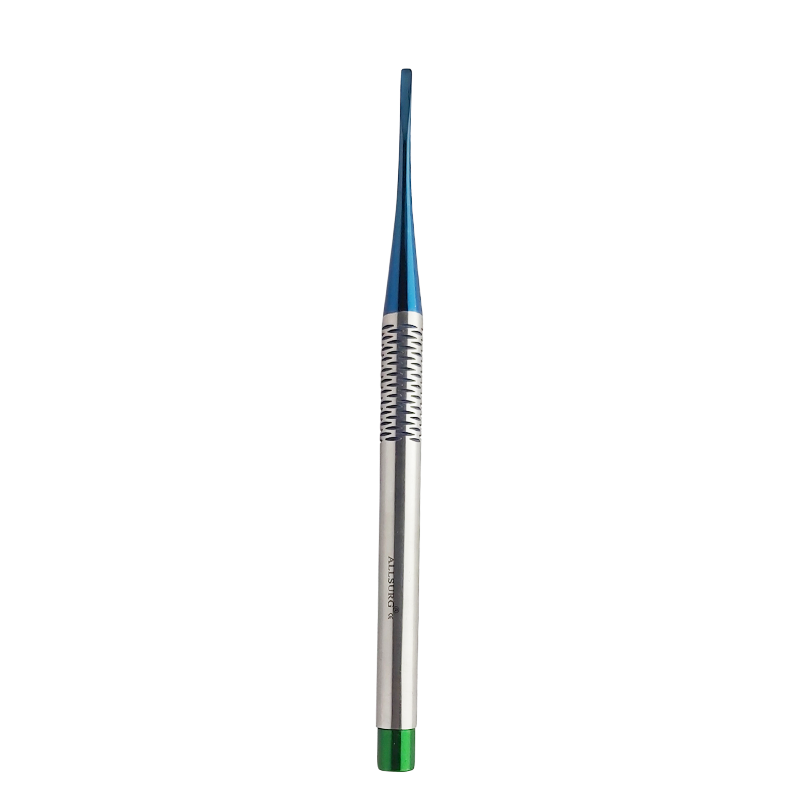 | PDL micro edge titanium coated elevators are the hybrids between the elevators and luxaters and are used at the beginning of any extraction.These are primarily used to cut the periodontal ligament sorrounding the tooth and elevate the broken root pieces. 2.5mm straight and curved are used as general luxation and elevation. |